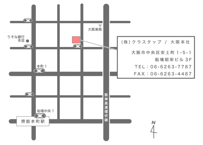 ●大阪市営地下鉄堺筋線・中央線「堺筋本町駅」より徒歩5分